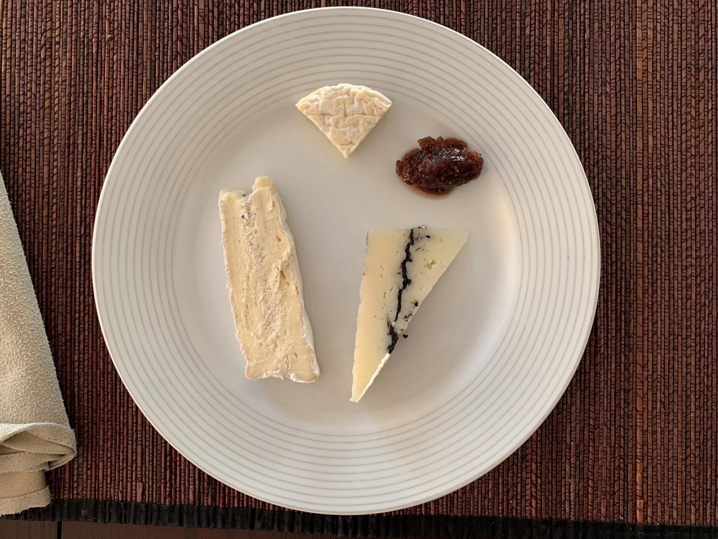 My cheese course of truffle brie, truffle pecorino, and Saint-Marcellin. Lausanne, Switzerland. November 23, 2023.