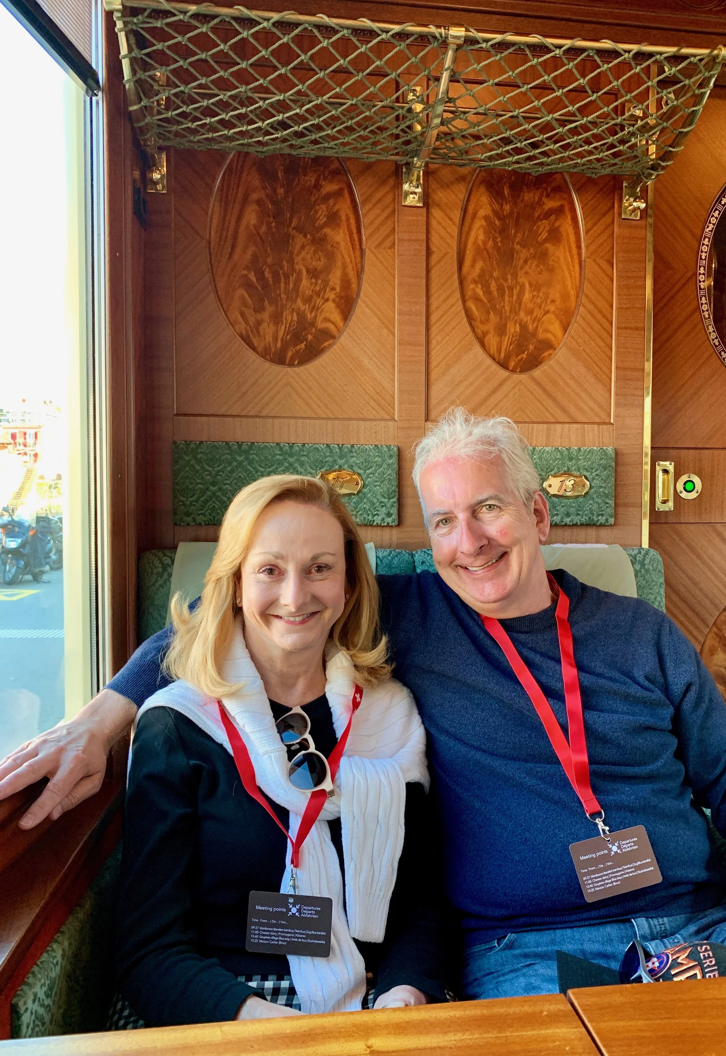 The Belle Epoque train car waiting to take us on The Chocolate Tour. Montreux, Switzerland. June 3, 2019.